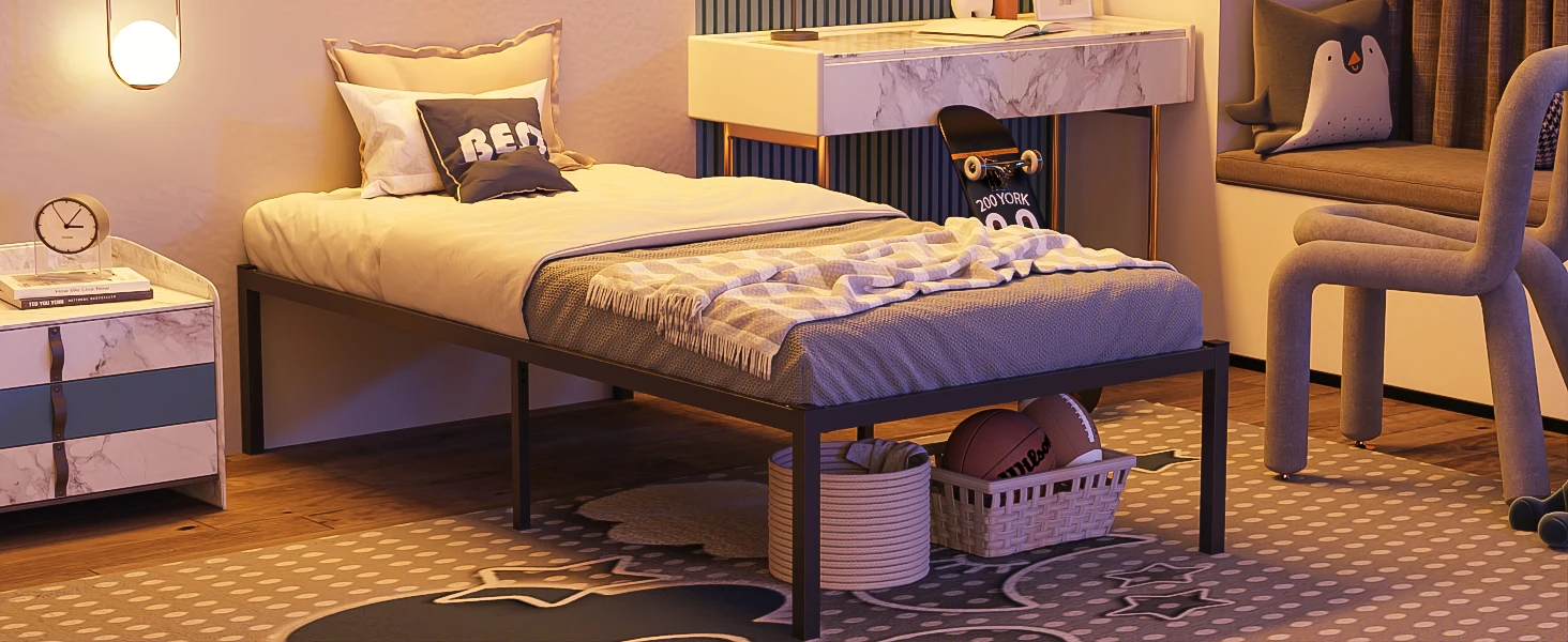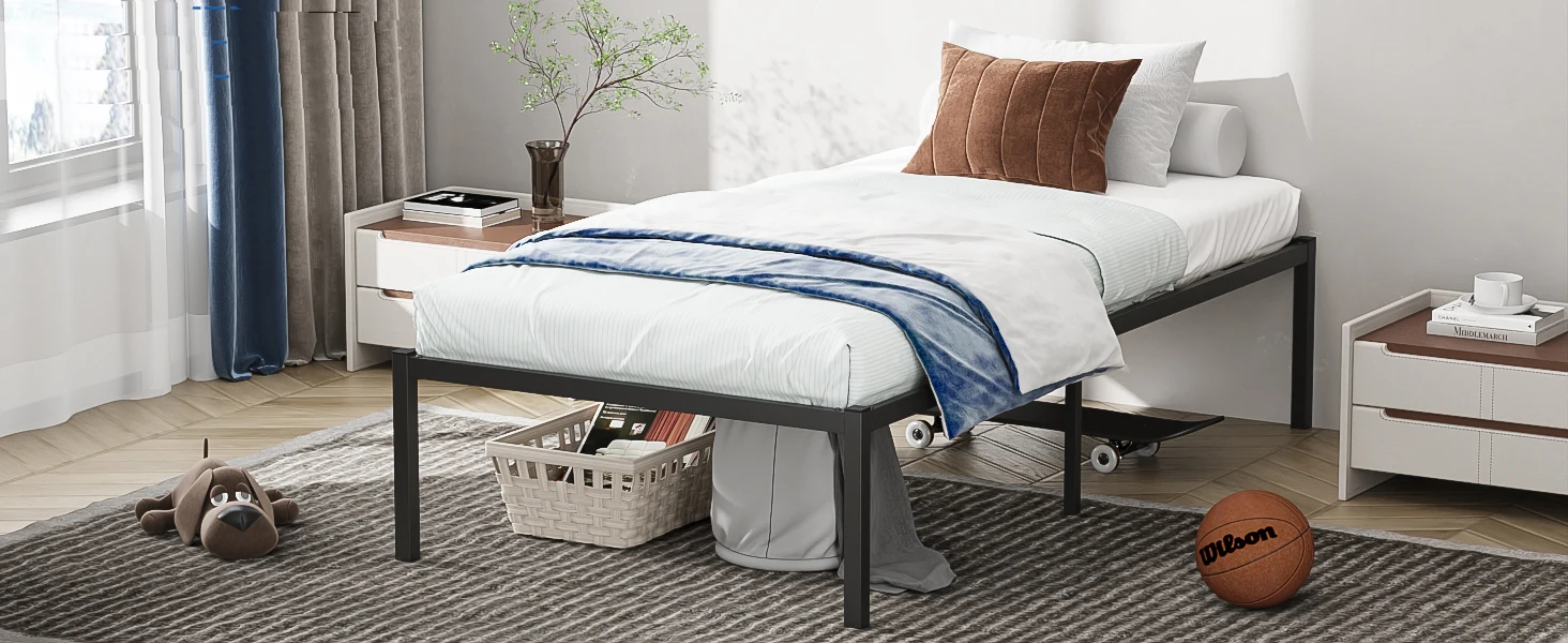 16 Inch Twin Bed Frame Heavy Duty Metal Platform Bed with Underbed Storage, No Box Spring Needed, Easy Assembly