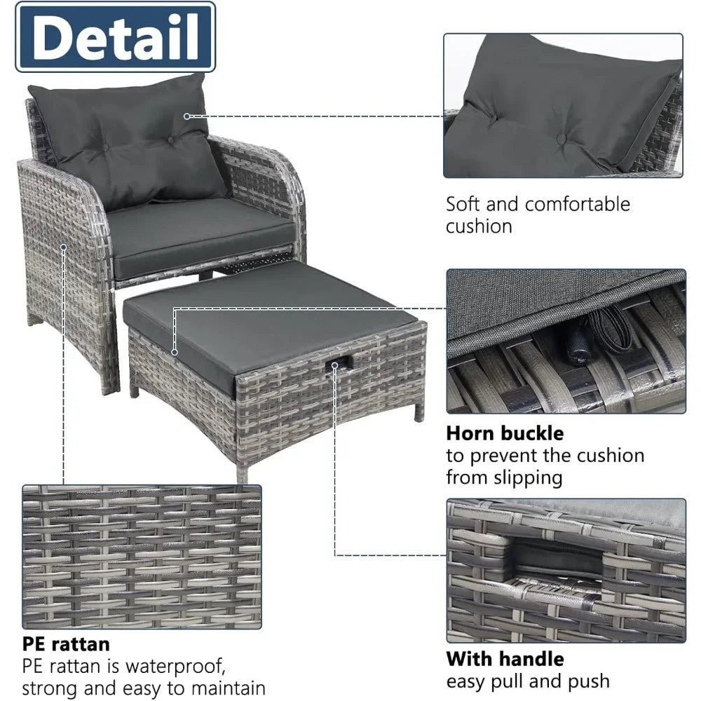 Study And Durable: This patio outdoor chair with ottoman set comes with all-weather wicker and sturdy steel frame, ensuring that it will more sturdy and can be used last for years. Tips: Please do not leave the product in the rain
