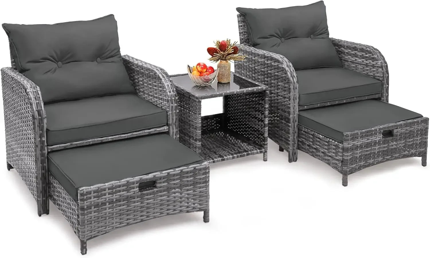 PACKING INCLUDED: The 5 pieces outdoor patio sets with ottomans includes 2 x single armchairs, 2 x Ottomans and 1 x end table. The tools and instructions needed to install the patio sectional chairs are also in the box