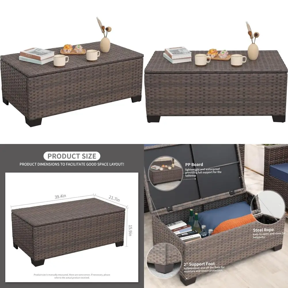 Outdoor Patio Storage Coffee Table with Wicker Design and Box Furniture