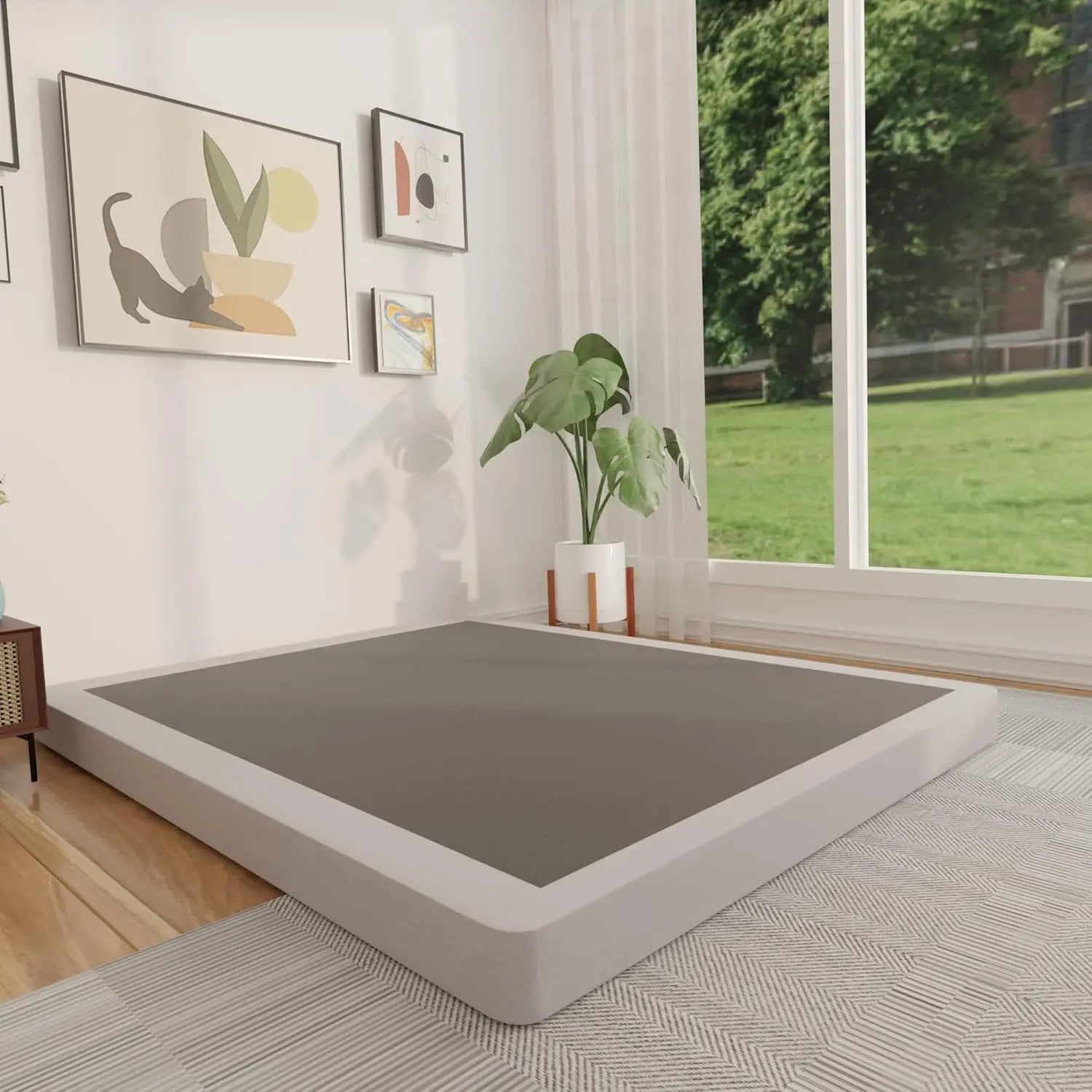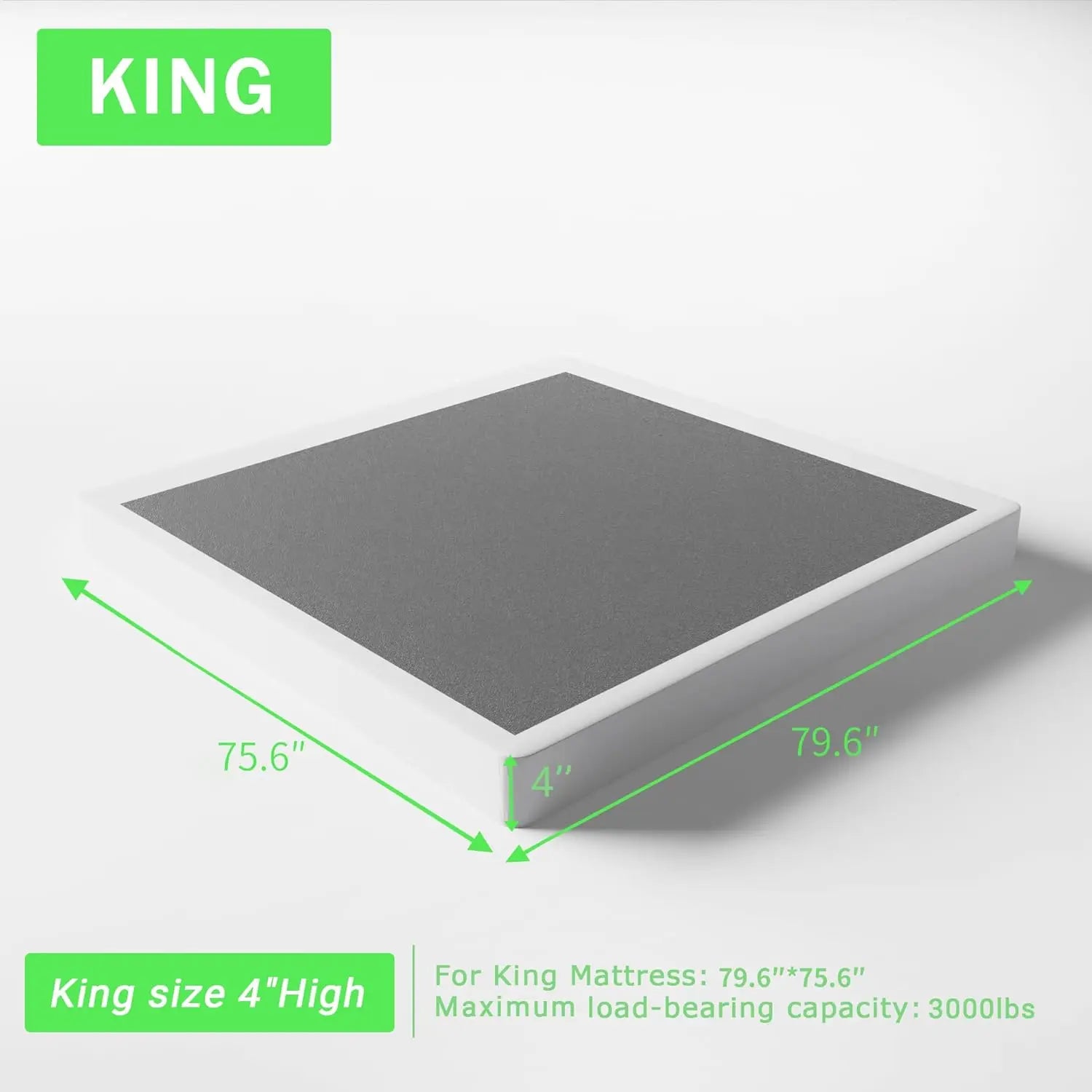 Spring 4 Inch, Low Profile King Size Box Spring Only, Heavy Duty Mattress Foundation Metal Bed Base with Fabric Cover,